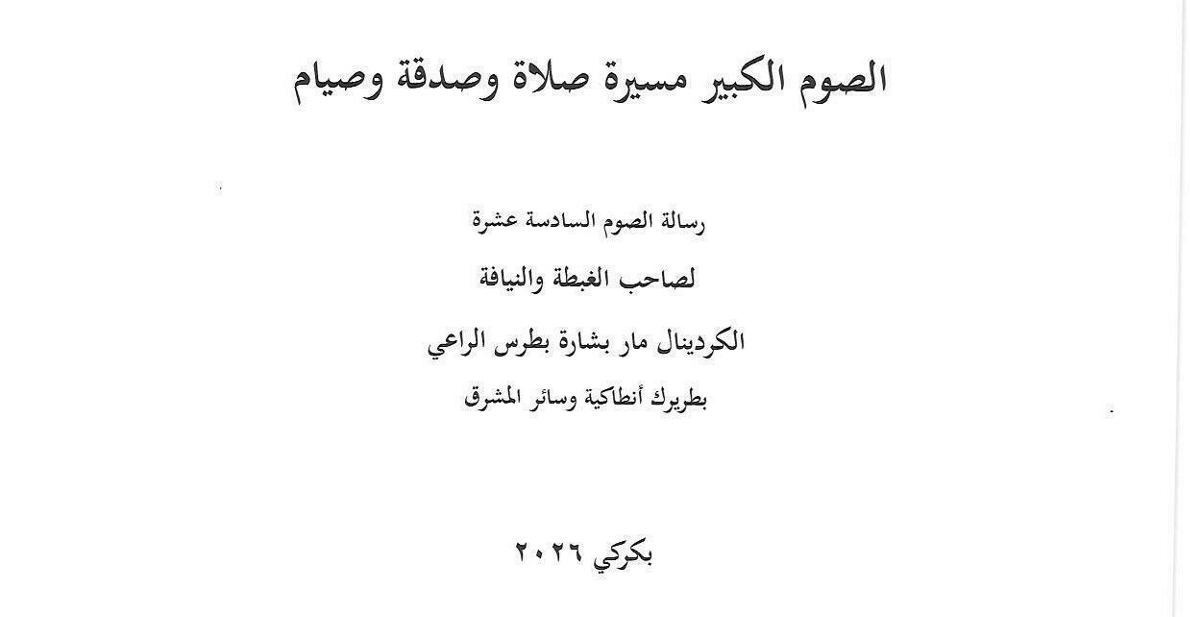 Attached please find in Arabic and English the Lenten Message from our Patriarch, Bechara Peter Cardinal Rai for your Lenten journey. I pray that each of us will draw closer to Christ Jesus this Lent and always.