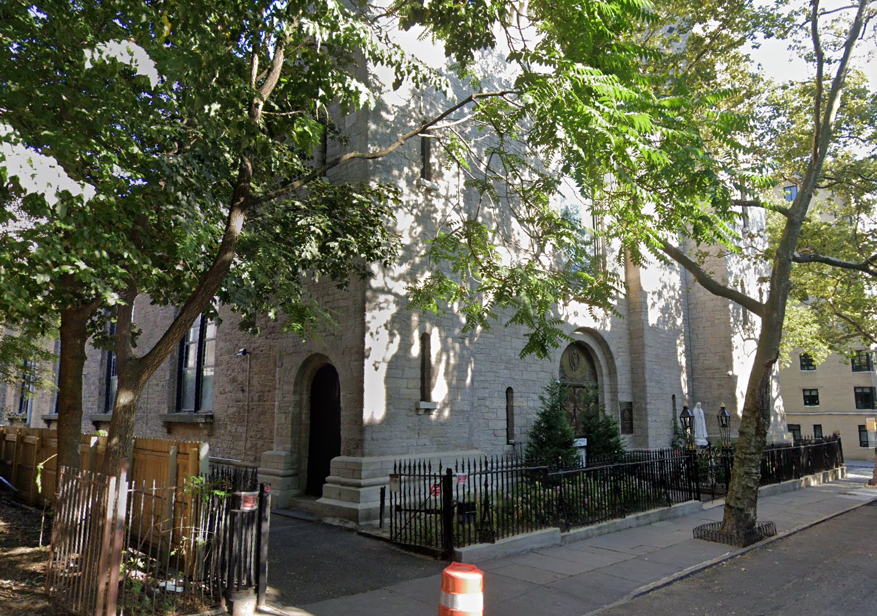 The Church of the Pilgrims # Construction on the church began in 1844 after a small group of individuals met early in that year and agreed to establish an ecclesiastical society that would become the Church of the Pilgrims. The group hired Richard Upjohn, a prominent architect well known for Gothic churches for Episcopal congregations, to design the church. In contrast to his Gothic-style work, Upjohn designed the first Romanesque Revival church in the United States, one which has been termed a medieval equivalent of a New England meetinghouse. The cornerstone was laid on December 22, which was the 224th anniversary of the landing of the Pilgrims at Plymouth, 71 people assented to the articles of faith and were recognized as a Church of Christ. Construction continued through 1845 and the church held its first public services on May 12, 1846.