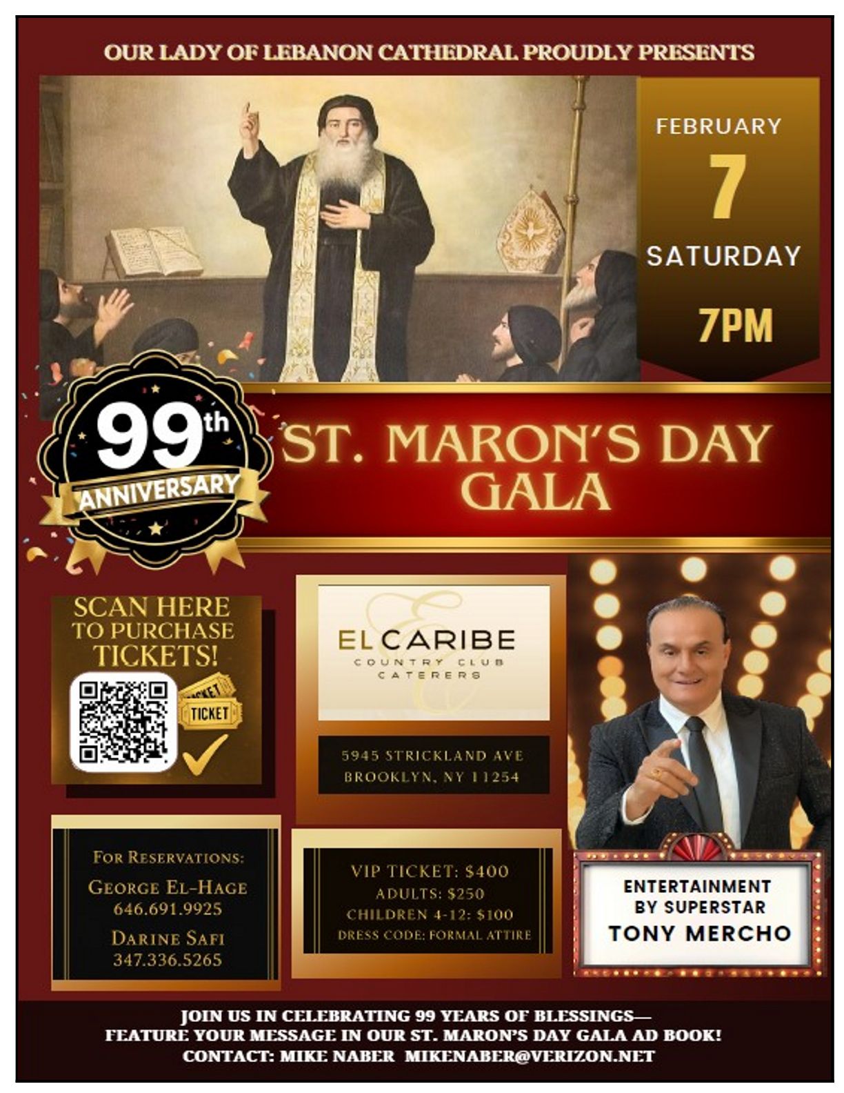 99th Annual St. Maron's Day Banquet![]() Please join us for our 99th Annual St. Maron Day Gala.